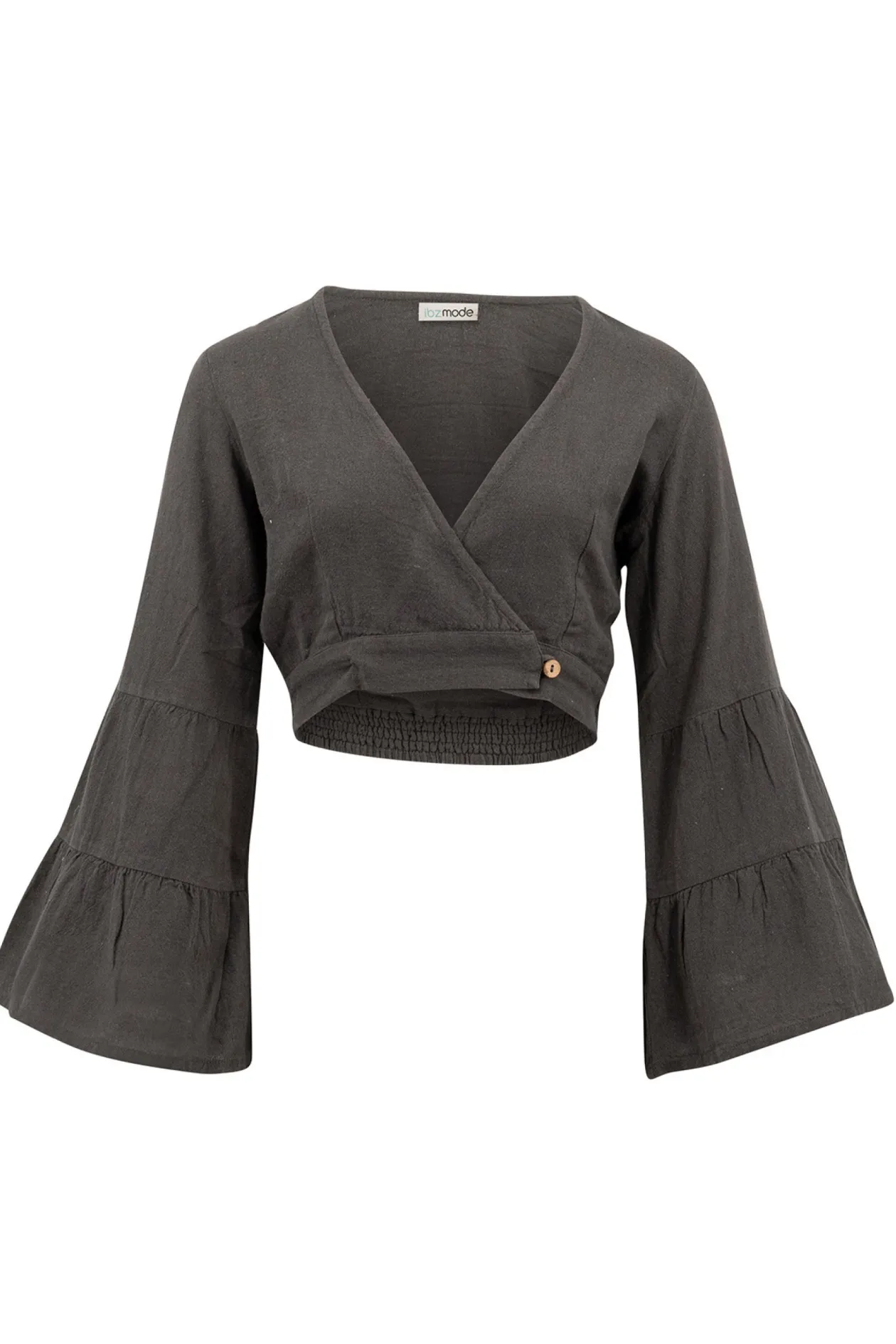 Entdecke den Charme der Wickel-Top Adri einfarbig Anthraziteine perfekte Mischung aus Komfort und Stil. Das Oberteil aus 100 % Baumwolle hat eine elegante Überlappung und ausgestellte Ärmel. Trage es zu einer High-Waisted-Jeans oder einem Rock für einen mühelosen, trendigen Look. Fühle dich frei und selbstbewusst!